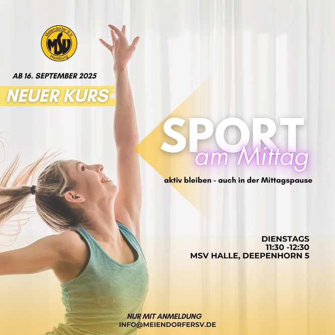 Fit bleiben in der Mittagspause, kommt vorbei und macht mit. Mit ausgewählten Übungen stärken wir den Rücken und die Körpermitte und können somit Haltungsbeschwerden vorbeugen und uns trotz Alltag fit halten. Ideal auch für Berufstätige im Homeoffice und für alle die sich Mittags in Meiendorf um ihre Fitness kümmern möchten.